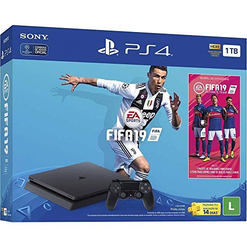 PlayStation Hits Bundle Mais leve e mais fino, o sistema PlayStation 4 tem disco rígido de 1 TB para tudo o que há de melhor em jogos, músicas e muito mais! O pacote PlayStation Hits oferece jogos incríveis que proporcionarão entre-tenimento sem fim com jogos dinâmicos e conectados, gráficos e velocidade intensos, personalização inteligente, recursos sociais integrados intensamente e inovadores recursos de segunda tela. Combina conteúdo sem igual, experiências de jogos imersivas, todos os seus aplicativos favoritos de entretenimento digital e recursos exclusivos do PlayStation. O PS4 é centrado nos jogadores, possibilitando que eles joguem quando, onde e como quiserem, possibilita que os maiores desenvolvedores de jogos do mundo deem asas à sua criatividade e transcendam os limites do ato de jogar por meio de um sistema que é ajustado especialmente para suas necessidades. Você veio ao lugar certo. Jogos exclusivos levam você a jornadas incríveis, desde jogos independentes elogiados pela crítica a sucessos premiados pela AAA. Acompanha o jogo de futebol Fifa 19. Jogue online com seus amigos, obtenha jogos gratuitos, salve jogos online e muito mais com a associação do PlayStation Plus (voucher de 3 meses incluído, associação adicional vendida separada-mente). Conecte-se aos seus amigos para transmitir e comemorar seus momentos épicos ao pressionar o botão Share e compartilhar no Twitch, YouTube, Facebook e Twitter. Aparelho Bivolt (100-240 V 1.65-0.75 A 50/60 Hz 165 W). Vem com um controle sem fio