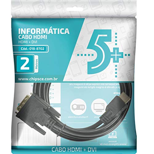 Principais características: Nossos cabos DVI+HDMI são ideais para conexão digital entre o seu computador e o monitor LED/LCD digital. Transmissão de sinal 100% digital com a mesma qualidade de imagem do cabo HDMI, resolução de 1080P e compatibil dade com 3D Proporciona a transição de imagens mais rápidas e qualidade superior em comparação à imagem via analógica, devido à origem digital da imagem. -Possui malha blindada interna -Com camada de proteção extra em Polietileno Especificações té c nicas: DIÂMETRO DO CABO:6. 0±0. 15mm CONEXÃO: DVI 24+1 + HDMI MACHO RESOLUÇÃO: 1080P COMPRIMENTO: 2 METROS COR: PRETO.